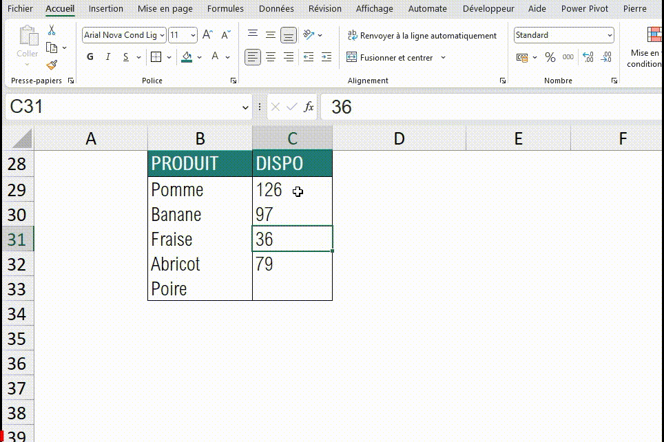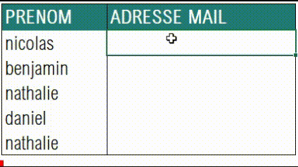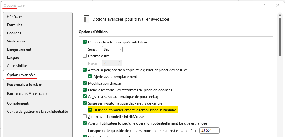 PS : pour que cela fonctionne, vérifier que la case de l’option “Utiliser automatiquement le remplissage instantané “ est cochée (dans Fichier, puis Option, puis Options avancées)