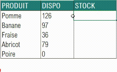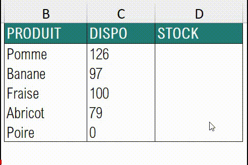 Exemple : reprenons notre exemple de stock disponible de fruits. Nous allons définir 4 conditions différentes dans le même format :